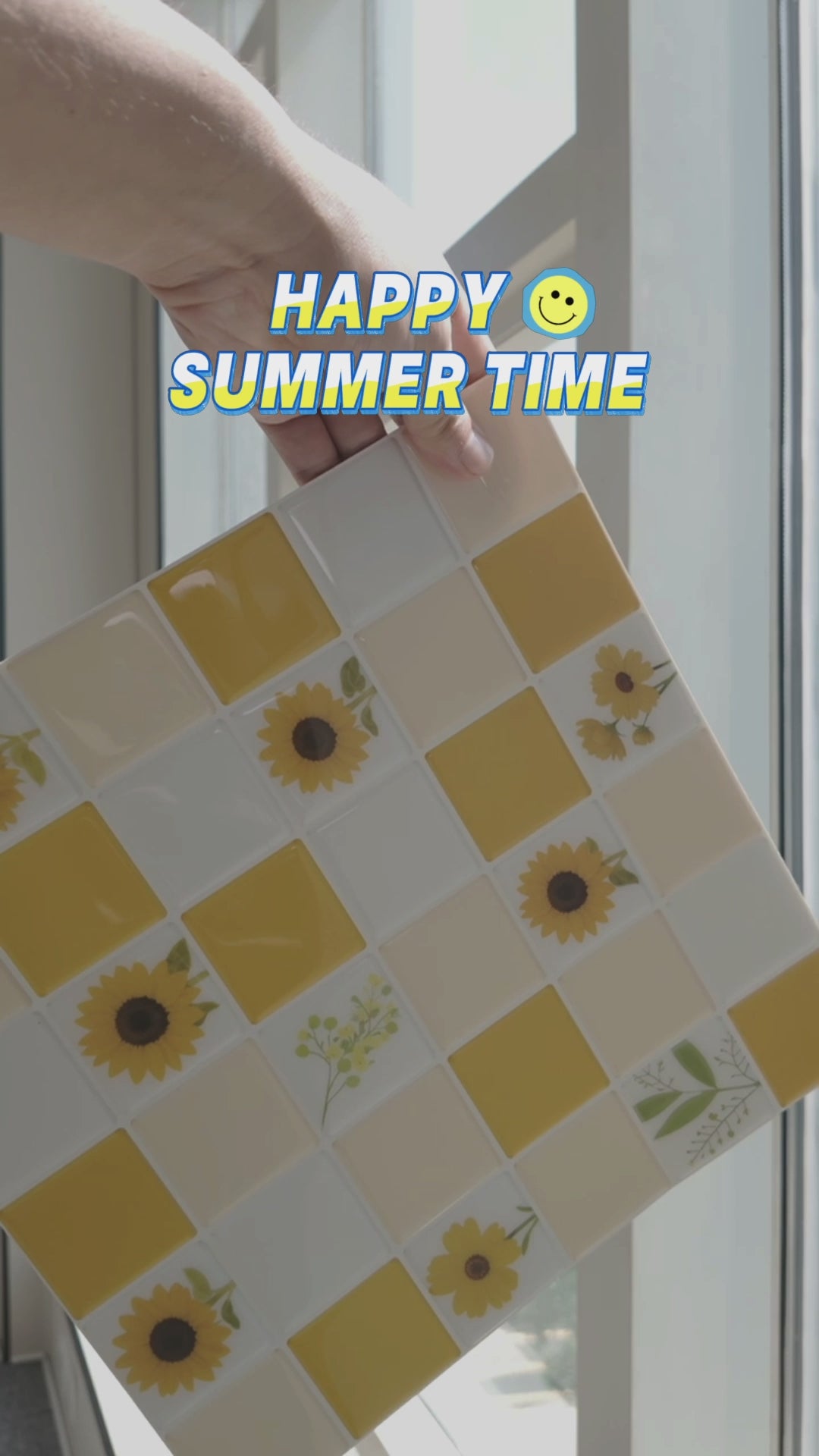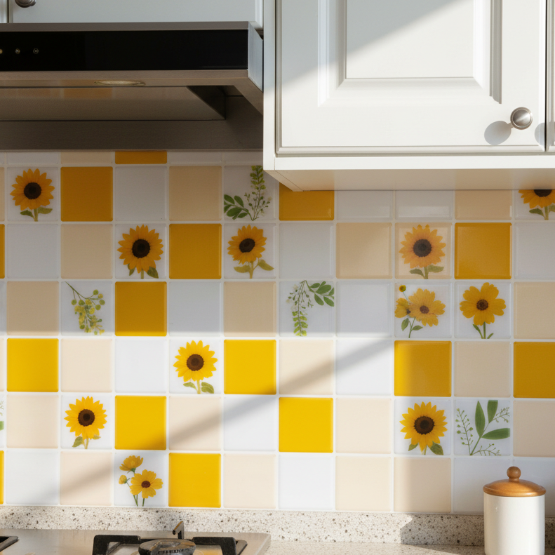 3D Bright Sunflower Mosaic Style Peel and Stick Wall Vinyl Tile