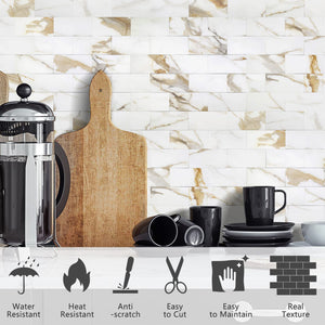 2''x4'' Subway Peel and Stick Tiles Sheeted - Calacatta Gold Marble