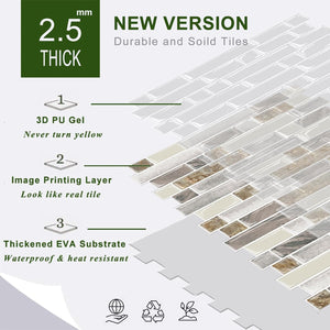 - ❁Stronger Upgrade Adhesive: 3X Stronger backing glue than ordinary vinyl backsplash tile, not only stick firmly to the smooth & clean surface, but also available on lightly textured wall