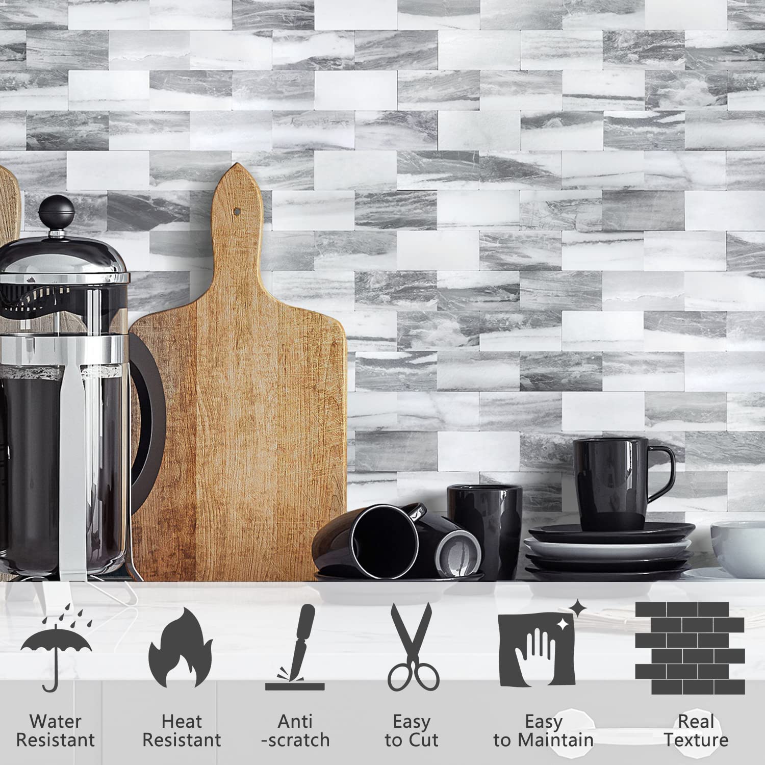 - REAL TEXTURED: The subway kitchen backsplash's design was inspired by nature, made of PVC composite laminate, have natural slate appearance and realistic texture.