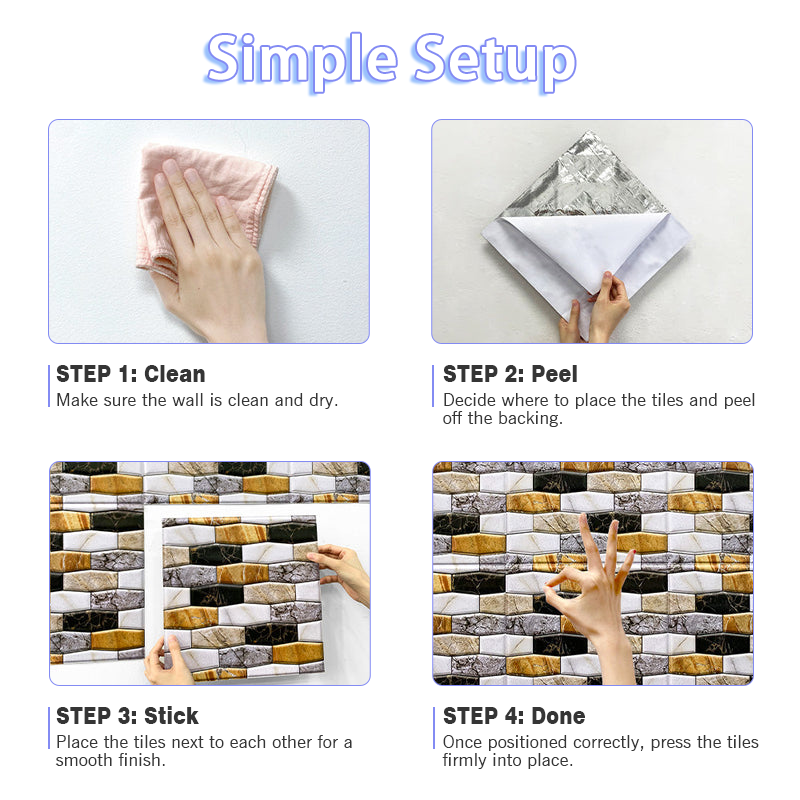 For more in-depth guidance, refer to our Installation Guide for 3D Peel and Stick Wall Tiles.