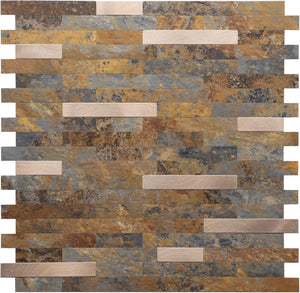 Faux Stone Mixed Metal Linear Blend - Rust Brown with Metal Gold