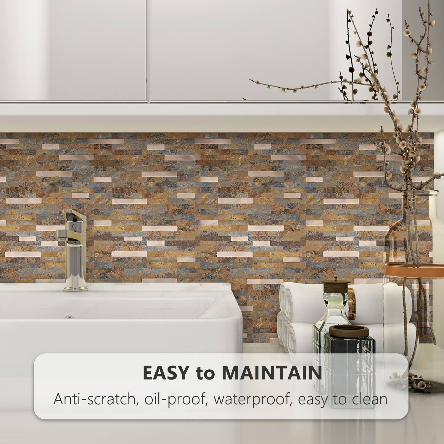 - Super Strong Adhesive: Stronger backing glue than ordinary vinyl backsplash tile, not only stick firmly to the smooth & clean surface, but also available on lightly textured wall.