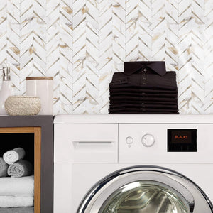 Herringbone Wall Tiles - Calacatta Marble Mixed Light Gold
