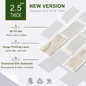 - đč2-3 Times Thickness: Much thicker than ordinary peel & stick tile, 2mm-2.5mm each, durable and solid tile, unlike soft sticker tiles