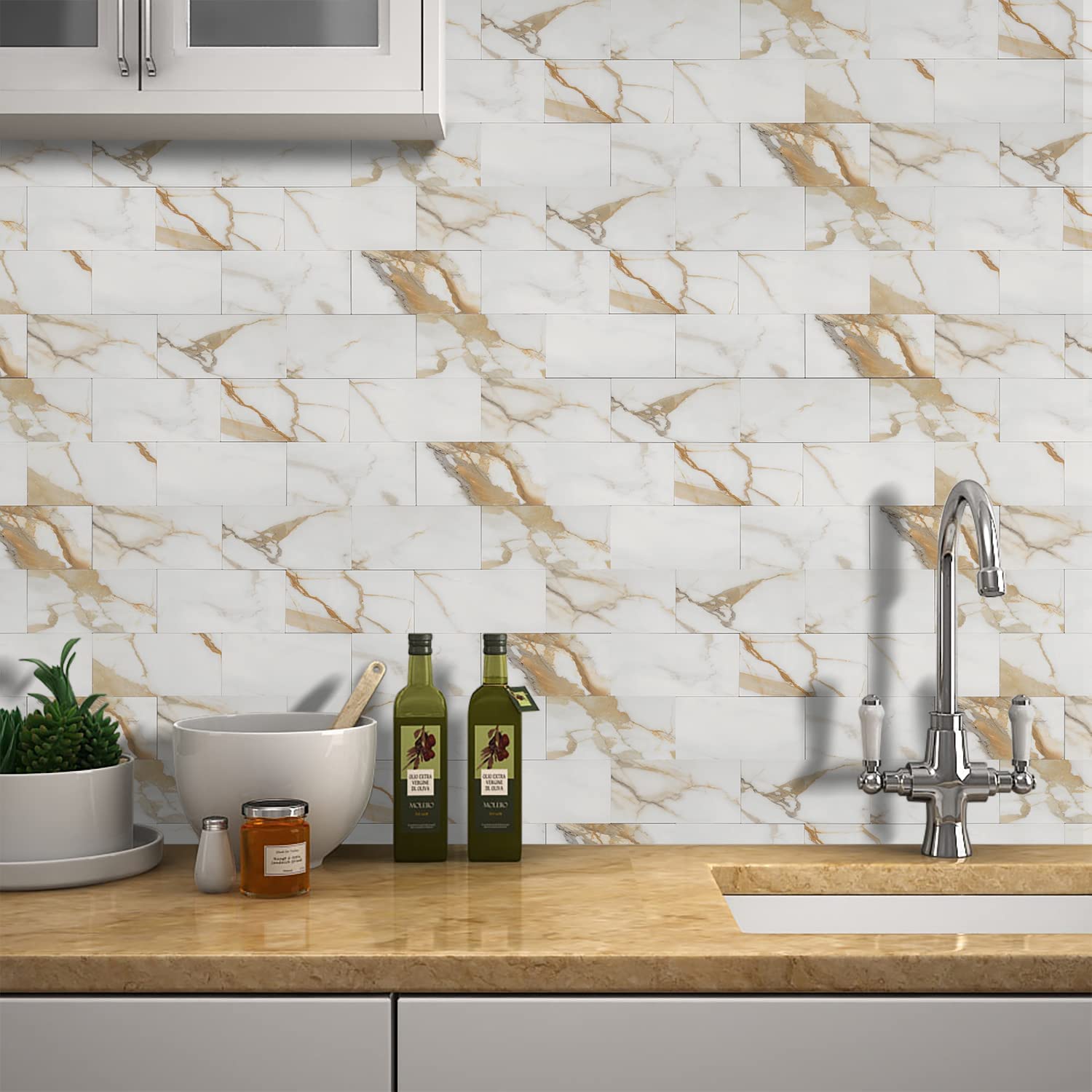 3''x6'' Subway Peel and Stick Tiles - Calacatta Gold