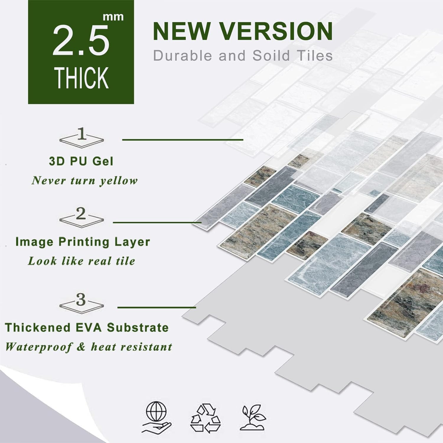 - ❁Stronger Upgrade Adhesive: 3X Stronger backing glue than ordinary vinyl backsplash tile, not only stick firmly to the smooth & clean surface, but also available on lightly textured wall