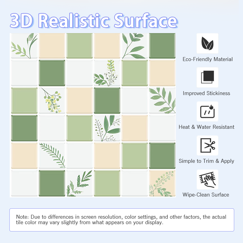 • 3D Botanical Style Mosaic Design: The realistic 3D texture closely mimics real decorative tiles while remaining lightweight and flexible.