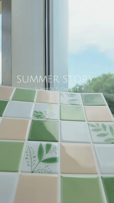Bring a touch of nature into your kitchen, bathroom, or cozy corner with this botanical-style wallpaper. Featuring a soothing palette of green, ivory, and beige tones, combined with various leafy plant patterns, it creates a light and refreshing atmosphere reminiscent of a spring forest. The tile-like mosaic design adds depth and visual interest—perfect for both accent touches or full wall coverage. Whether you’re upgrading a kitchen backsplash, bathroom wall, or accent nook, installation is quick and easy—just peel and stick.